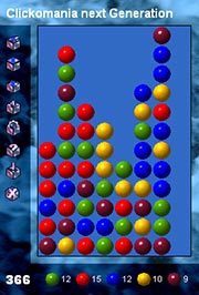 ClickOMania is a casual clicker game developed by Matthias Schüssler as cardware (freeware/shareware) in 1998. The game belongs to the SameGame-likes category. Two or more connected fields can be clicked away (horizontally and vertically). The playing field has gravity and is also pushed to the left. The aim is to clear the playing field as much as possible. The game was designed to be played while working, as a way to relax. The game was distributed via freeware/shareware channels: FTP, shareware lists, CD-ROMs, cover CDs for magazines and a website. The game was available in different language versions. It had various new features such as different game variants, a game designer and a web high score. You could also specify your own image or folder, and it would take the images from it for the background and dynamically adjust the level size.