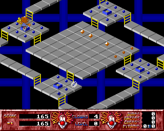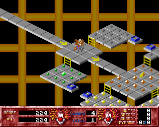 The player's goal is to maneuver Beppo the Clown through various mazes to find the Land of Magic Crystals. To reach this mysterious land, the player must solve 82 isometric levels by collecting all the balls and diamonds scattered on the game board. The levels have different levels that can be navigated either by using a ladder or by jumping. However, both jumps and bullets for your gun need to be picked up first - which proves challenging as the pick-ups move around the level. As the game progresses, the level of difficulty and complexity increases steadily. For example: In the beginning, the player encounters no enemies; later, the enemies follow pre-defined paths; and by the end of the game, the enemies are actively pursuing Beppo. Other gameplay elements are also gradually introduced, such as one-way tiles, teleport tiles, funnels, speed-up tiles or death tiles. Players can also increase their level score by stepping over colour-changing tiles so that they are all the same colour by the end of the level.