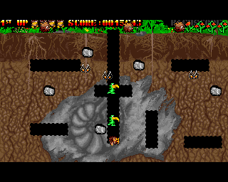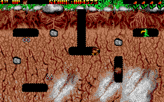 Dugger's Amiga version is made by Christian A. Weber as coder, Jens Eisert and Roland Petermann as artists and Markus Grimmer as producer. The original Atari version is designed by Tillmann Bubeck and Thorsten Zimmermann. Both versions were released by LINEL in 1988. In Switzerland and France, the game was sold via distributor Logico Software. In Germany, it was sold via distributor Bomico. The game features the same gameplay as Namco's classic Dig Dug. The game features 16-bit audio and visuals.