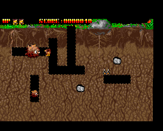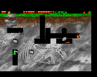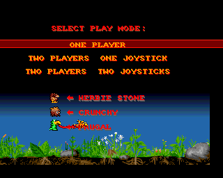 The game has a single player mode and a multiplayer mode. The multiplayer mode can be played with two joysticks or alternatively players can take turns playing with a single joystick. The player's goal is to defeat all the enemies in a level by dropping rocks on them or causing them to explode. To do this, the player controls a cave man called Herbie Stone. His enemies are called Crunchy and Frugal, and are worth 300 and 400 points respectively for standard killing, and two thousand points for killing them with a falling rock. Periodically, bonus items such as a mushroom or leaf will appear in the centre of the screen.