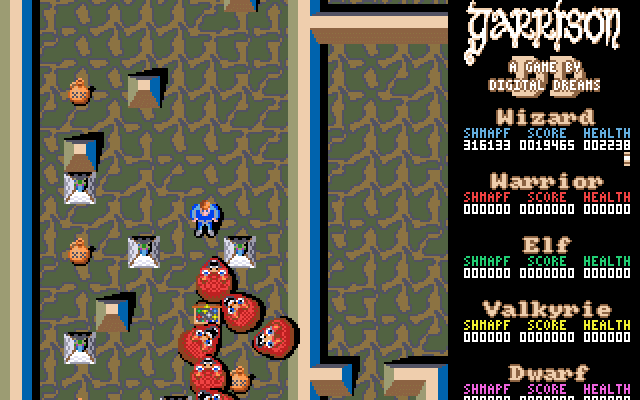 Garrison is a top-down hack-and-slash game for the Amiga, with some similarities to the arcade game Gauntlet (Atari Games).
