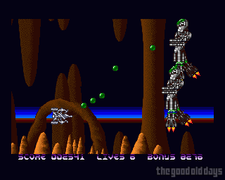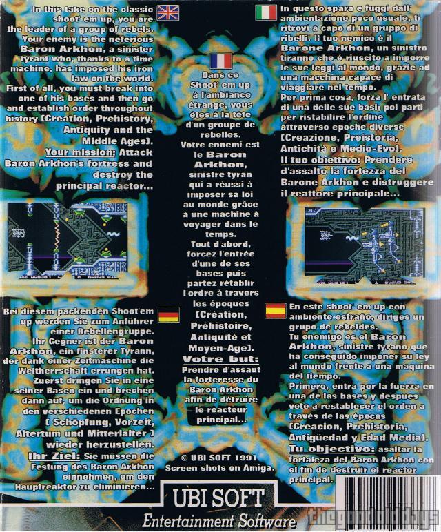 A sinister villain named Baron Arkhon has thrown the galaxy's balance out of kilter. You must destroy enemy bases and restore equilibrium in four different time periods: The Creation, Prehistory, Antiquity, and the Middle Ages.