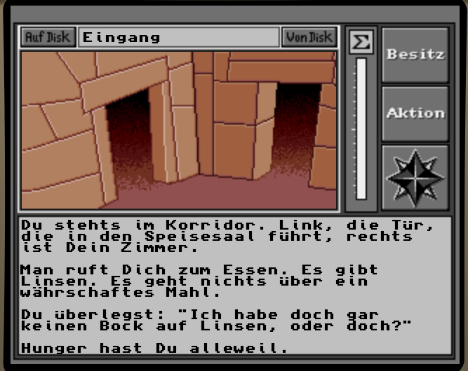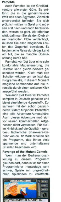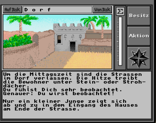 The game is an impressive graphic adventure divided into six chapters and written entirely in German. It was released as shareware. Even today, you have to donate 10 Swiss francs (virtually) to the developer before you can start playing. A review in the Amiga Magazin 07/92 compliments the adventure.