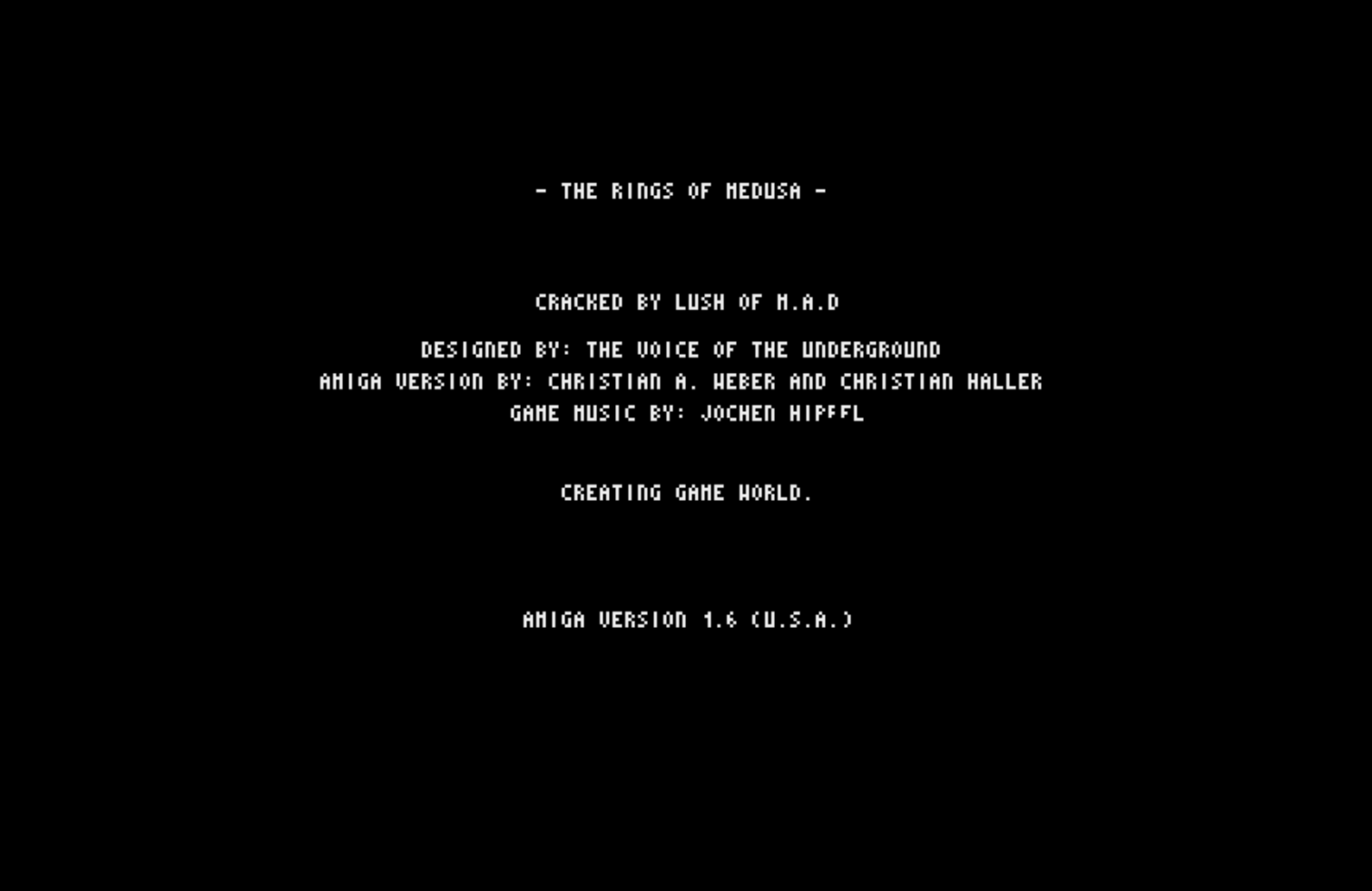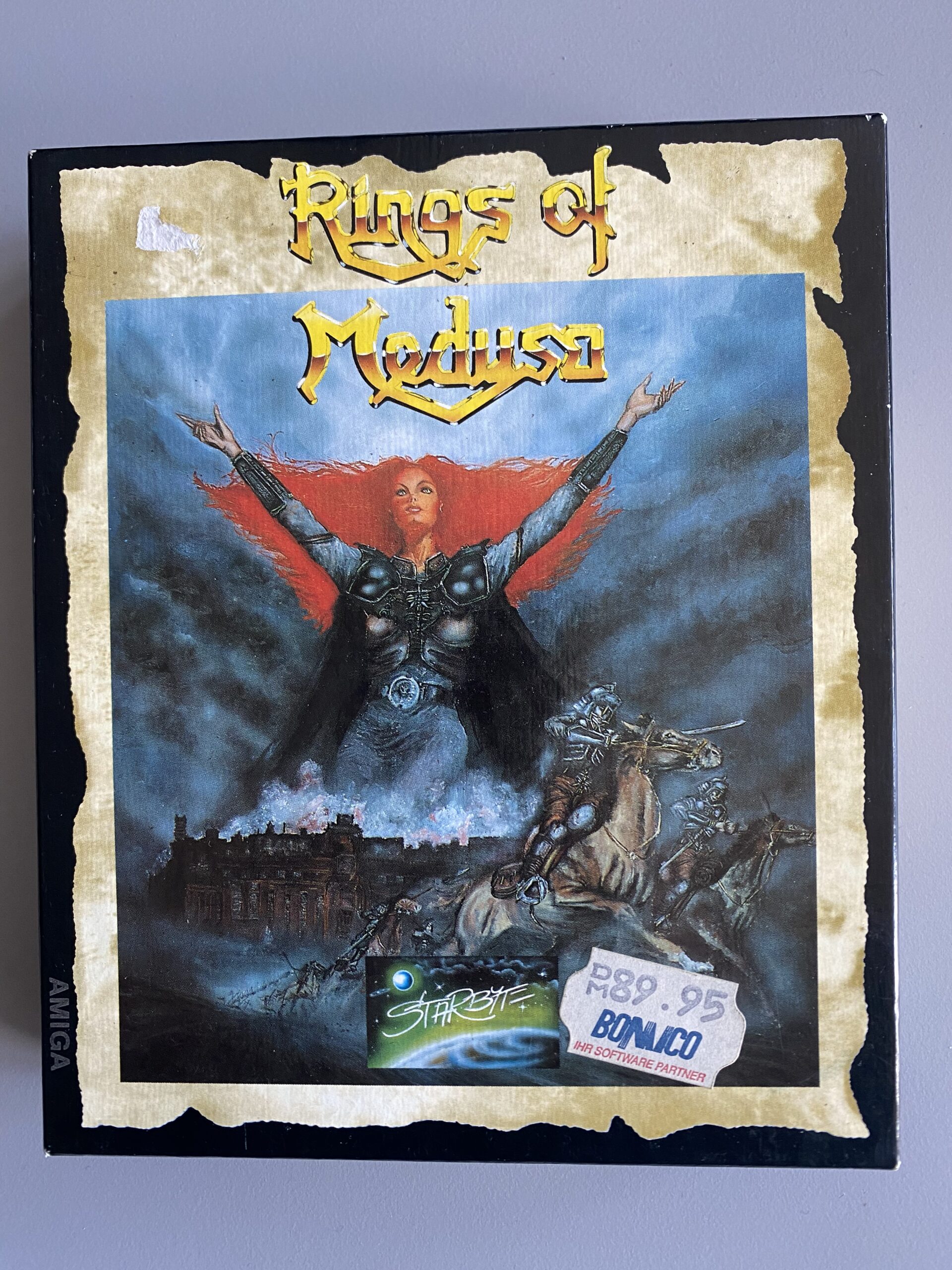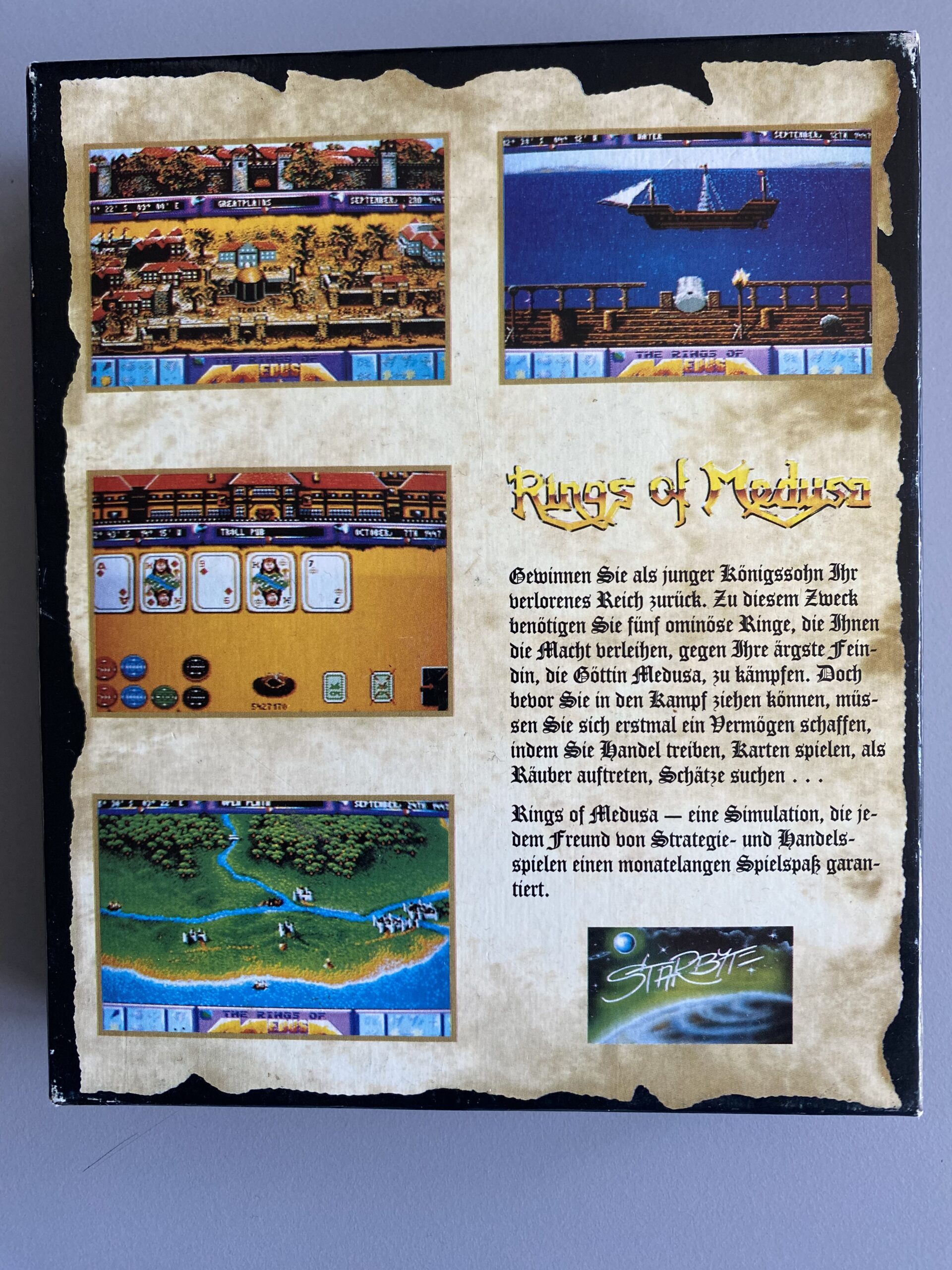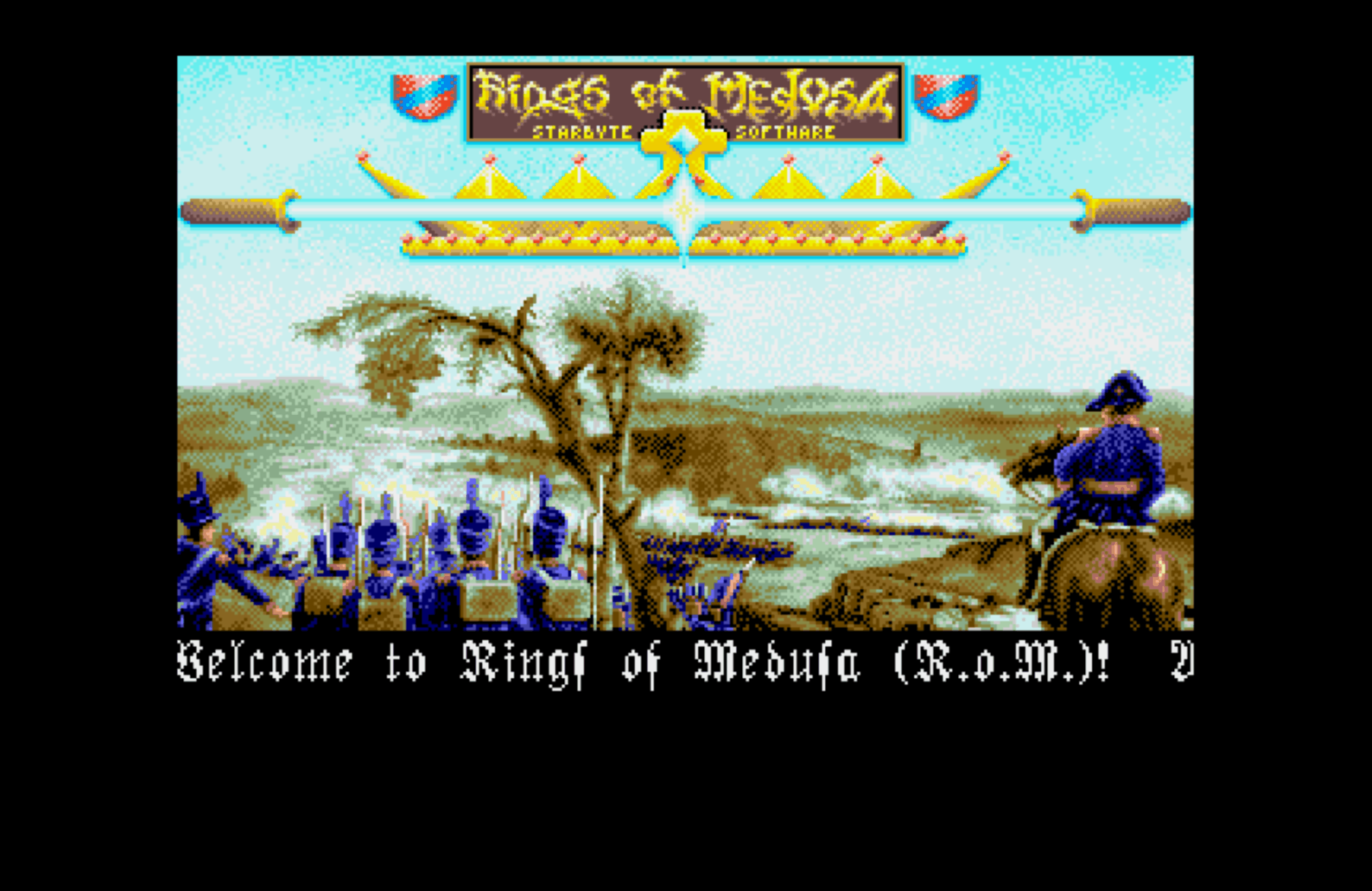 Rings of Medusa (also known as ROM) is a mixture of strategy, role-playing, and economic simulation. It was the first game published by Starbyte Software. The Amiga version was programmed by Christian A. Weber and Christian Haller. The original concept and design was done by Tillmann Bubeck on Atari ST. The game was released for Amiga, Atari ST, Commodore 64, and MS-DOS in single-player mode.
