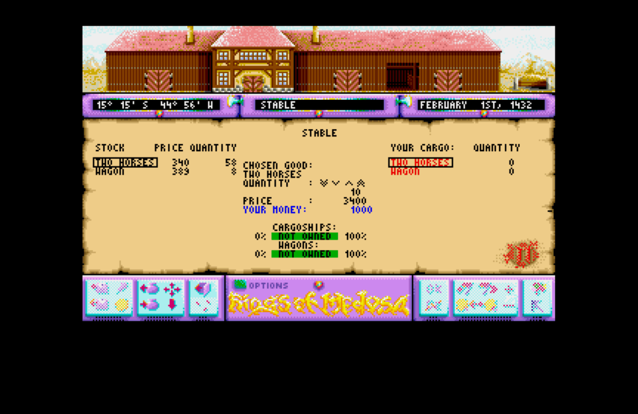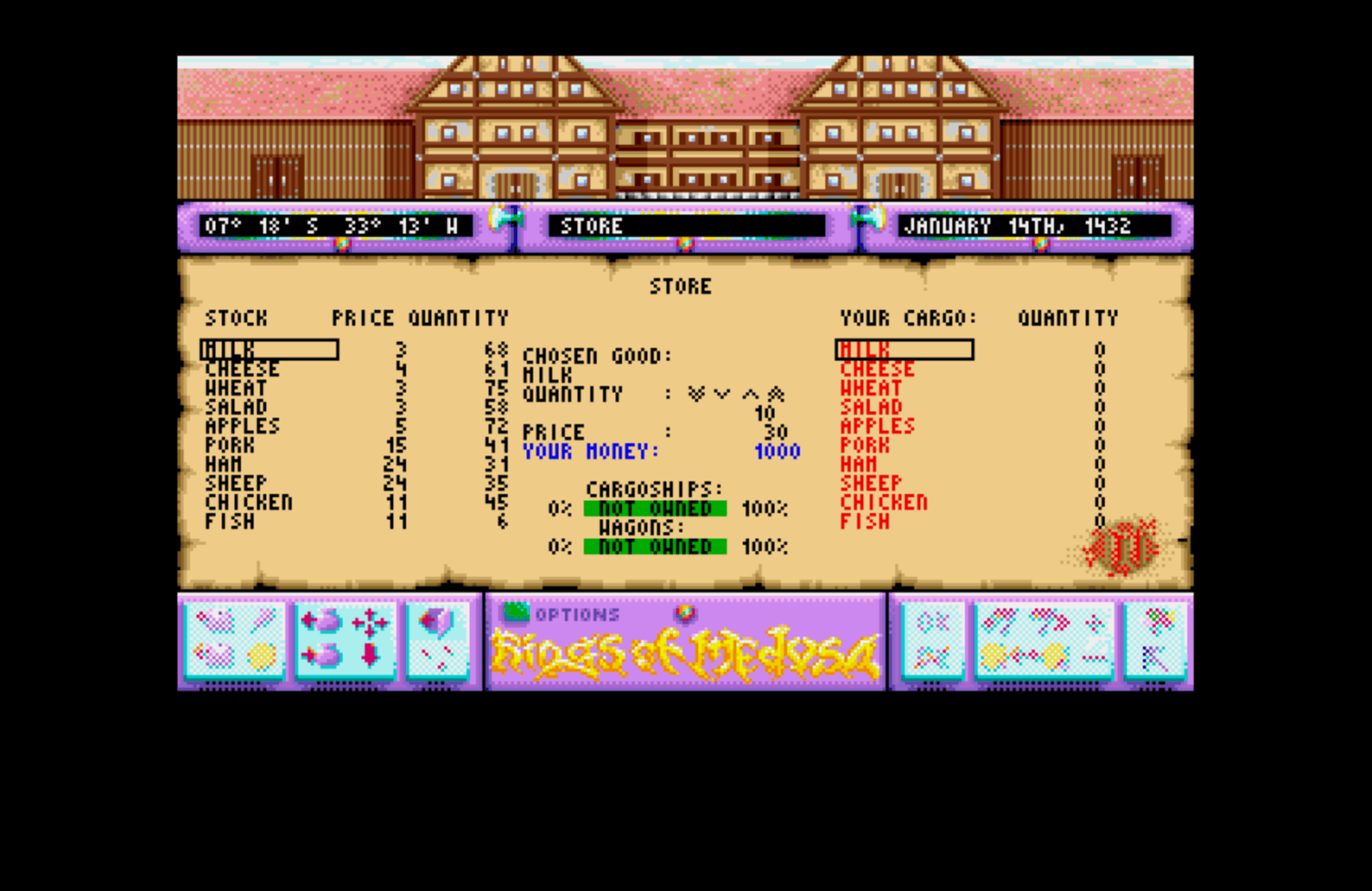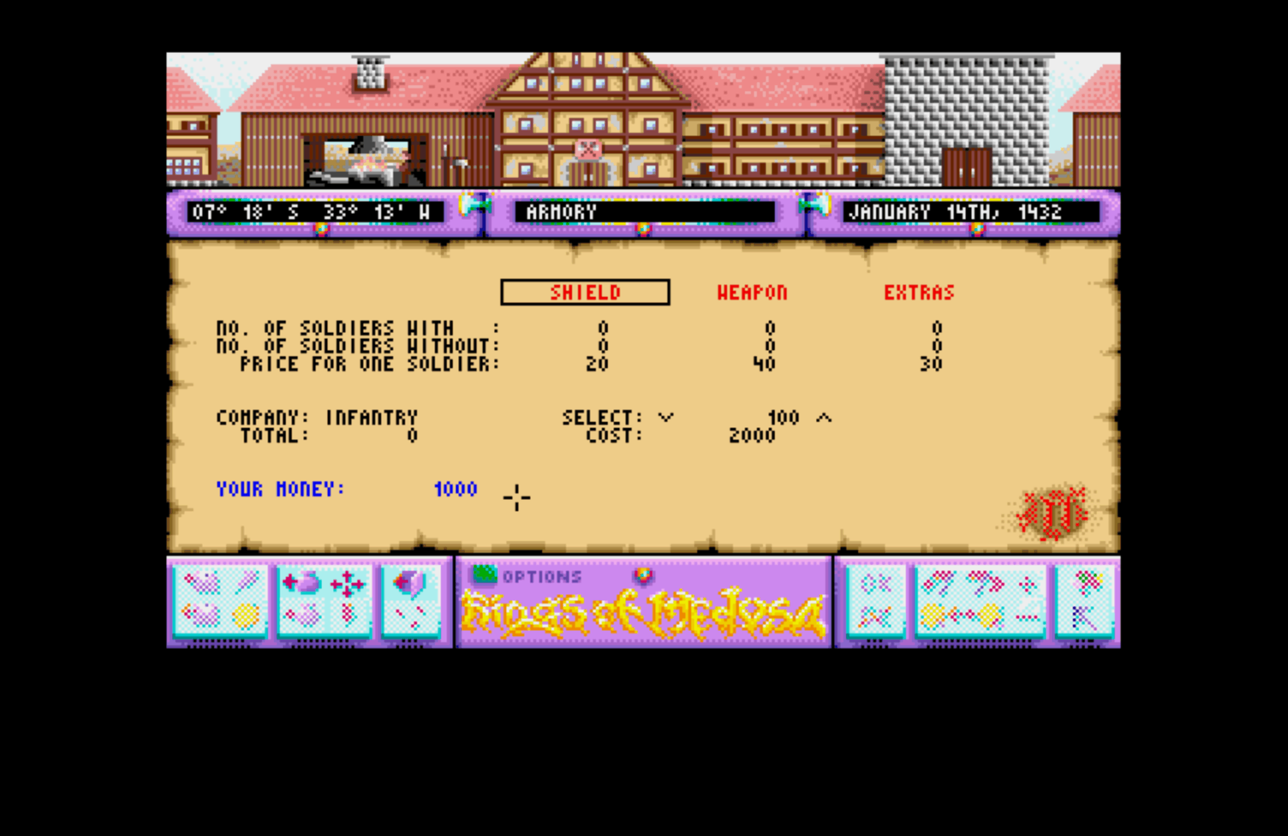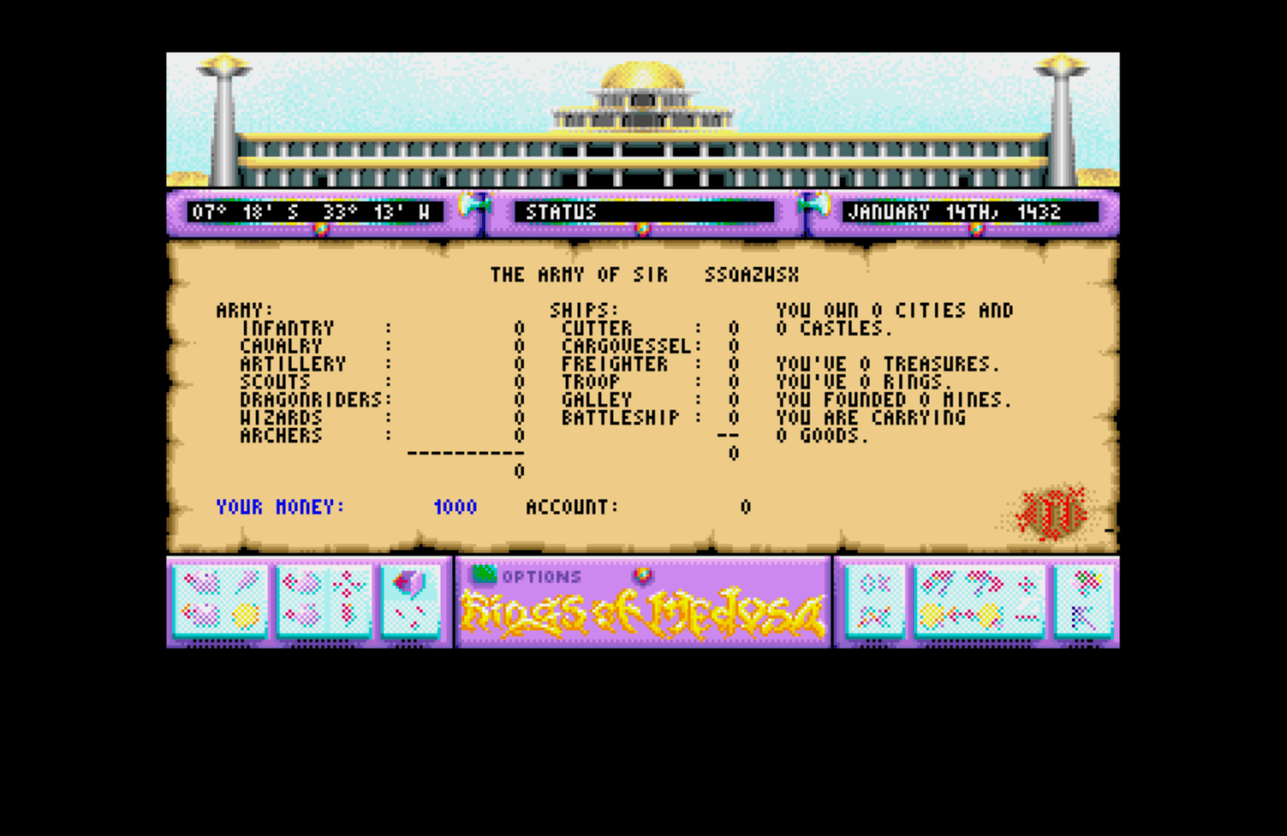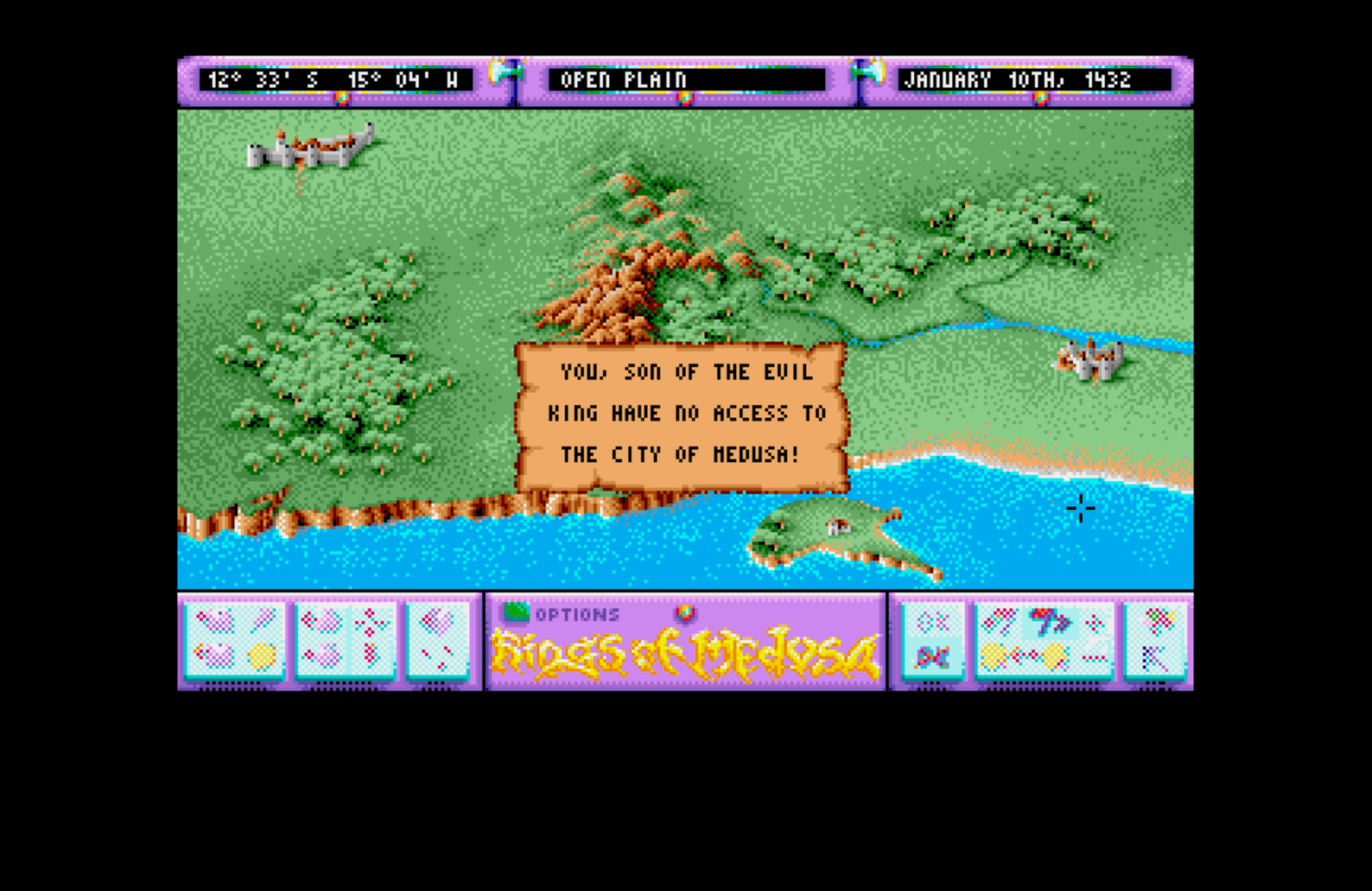 At the beginning, the focus is on trade: you buy goods cheaply and sell them at a profit to build up capital. At the same time, players can recruit troops, defend or conquer cities, search for treasures, and fight sea and land battles. Once you have enough money and a strong army, the search for the five rings begins. These can be obtained through conquests, treasure finds, or naval battles. With all five rings, Medusa can be summoned, leading to the final battle. Players move freely across a large map, trade, strengthen their forces, and explore the land. Occasionally, there are arcade sequences such as sword fights or sea battles, and you can even choose the races of your own troops. An interesting detail: by entering “desoxyribonukleinsaeure” (or “desoxy...” for short), an early cheat mode could be activated – a well-kept secret from the old days. Developer Christian A. Weber shares more about the development and anecdotes about the game on his blog.