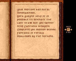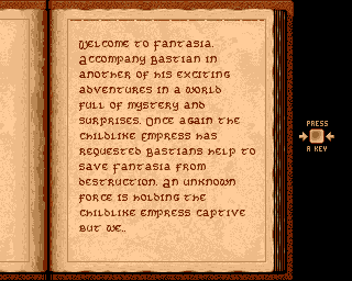 The player takes on the role of Bastian and is once again summoned by the Childlike Empress to save Fantasia, the Land of Dreams. The player progresses through various action scenes, such as running through the Silver City or riding on Falkor, with dexterity and memorization of level paths being the main focus. As in the film, the player must also escape from giants or push them over ledges. With each level, the story advances further, usually presented in the form of a few pages written in a “book.”