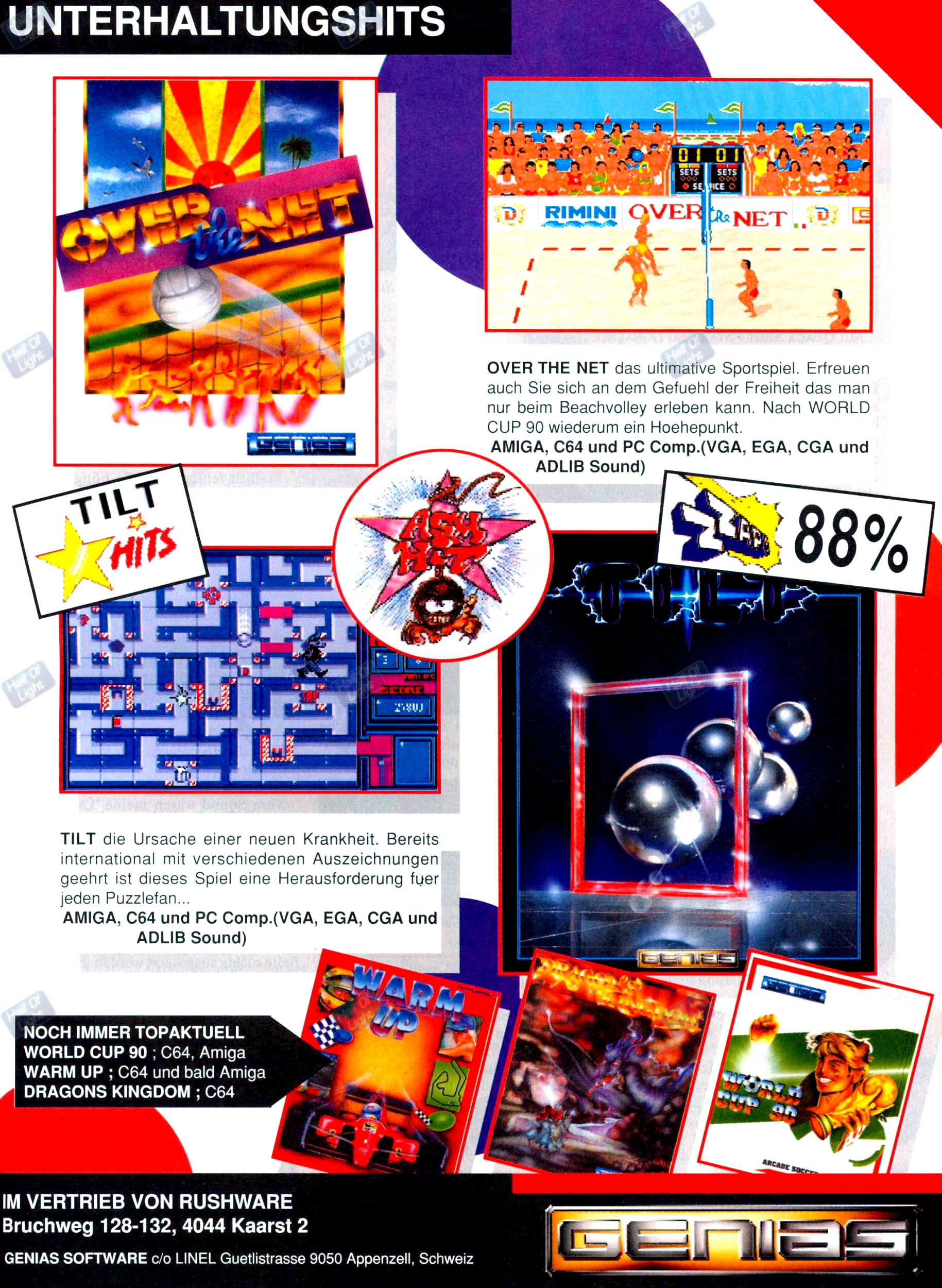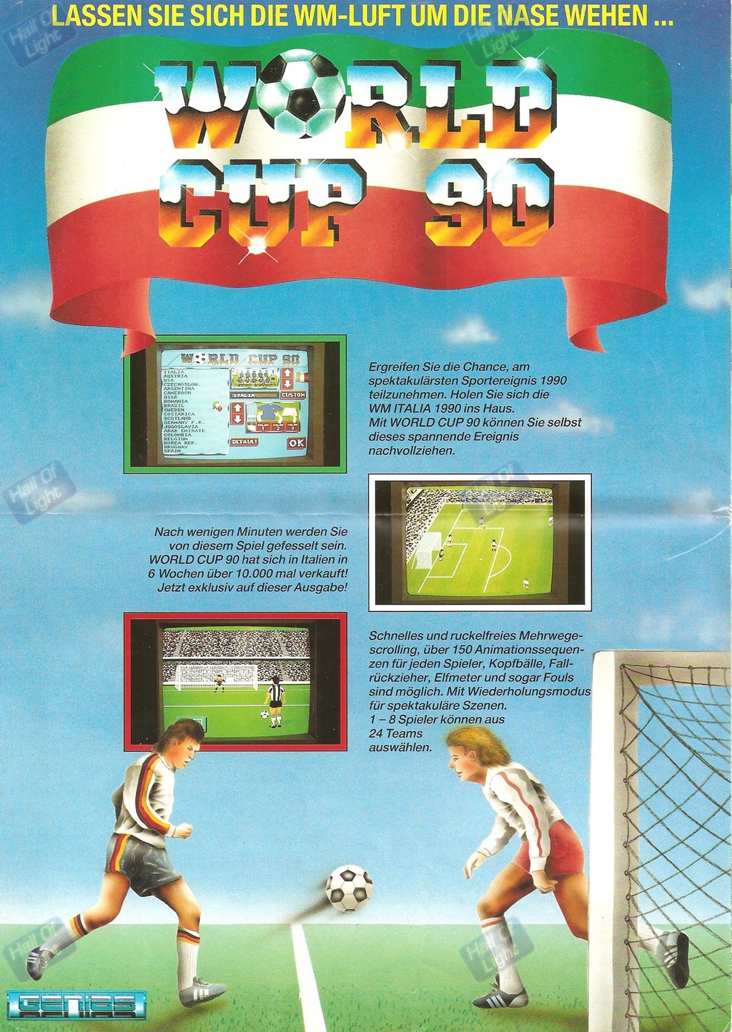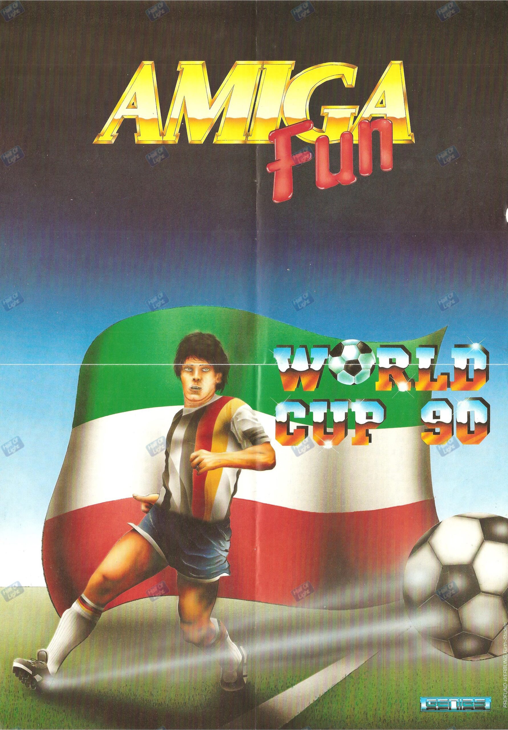 Markus Grimmer, Swiss publisher of LINEL, had negotiated a deal with the German Gong Verlag and organized secondary releases of some of LINEL’s games in so-called disk mags. These releases started in 1990 with the game World Cup 90 (1990) by GENIAS, an Italian cooperation partner, in the Golden Disk 64 series, as well as in Computec’s Amiga Fun and Amigo! series, for which you could even get a 4-player module (Amiga version). The games were distributed by LINEL in the UK out of the office in North High Wycombe. The game was developed by two GENIAS crews in Bologna with producer Ricardo Arioti and the Dardari brothers as devs. LINEL cooperated with GENIAS in publishing and distributing some of their Amiga games in English and German.